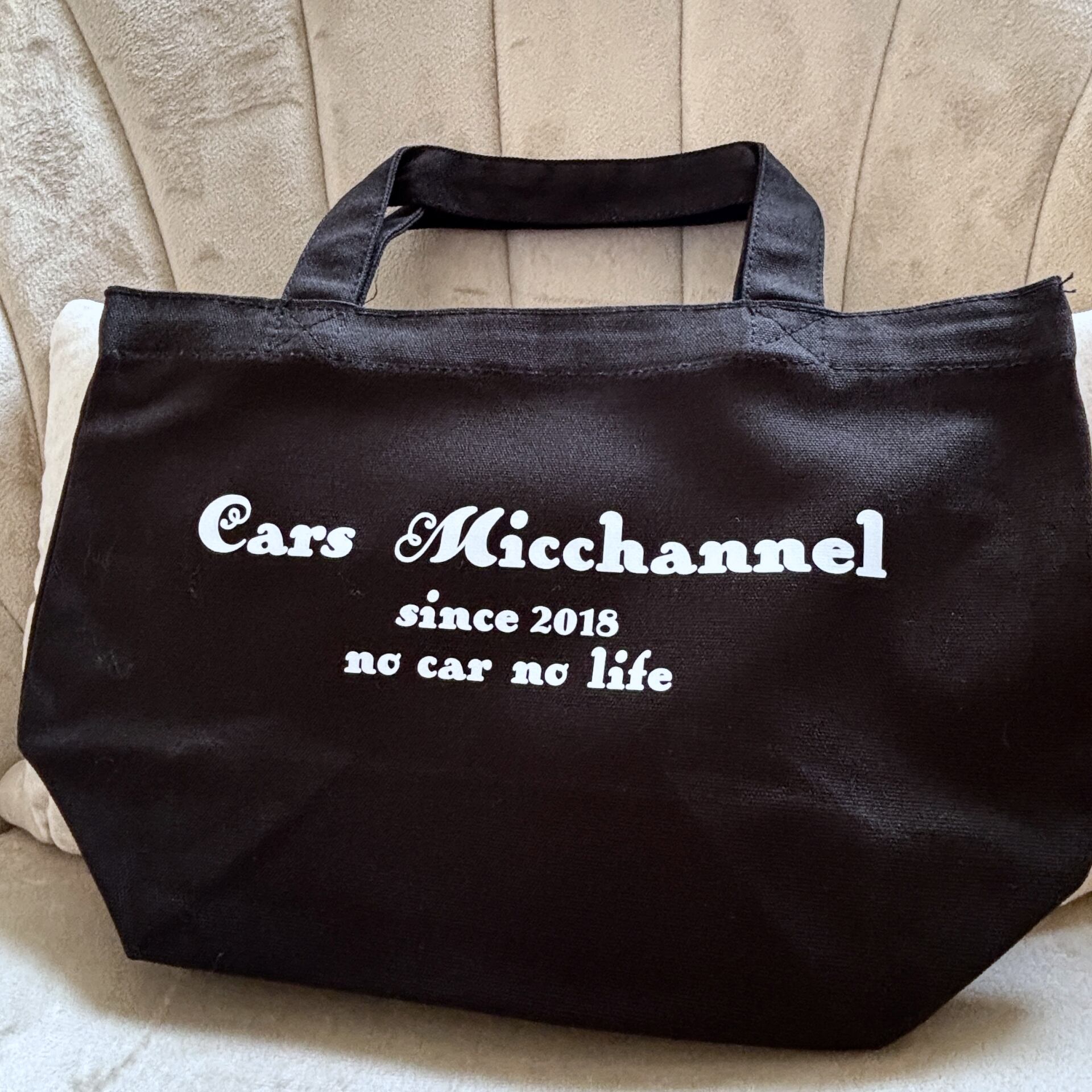 黒いバックに「Cars Micchannel」LOGOが白プリントされたシンプルデザイン。